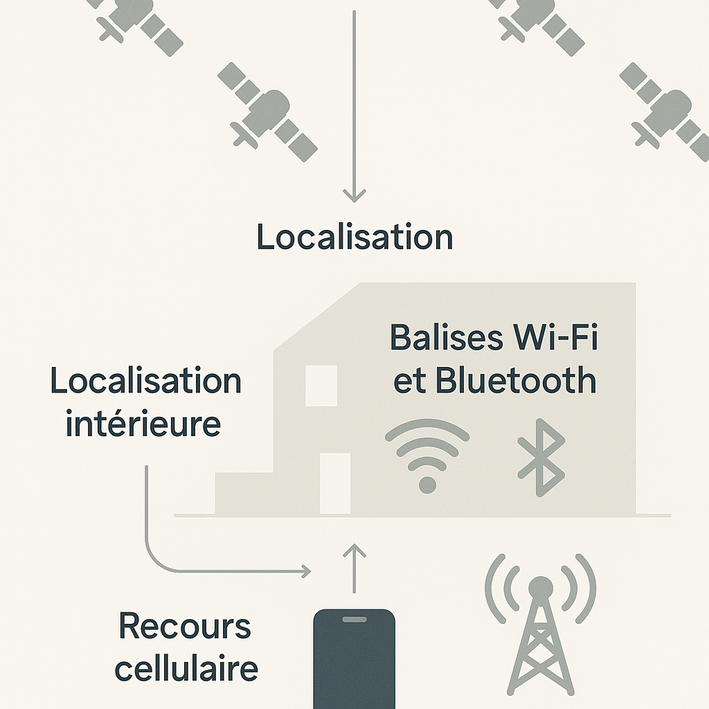 • Le Bluetooth/UWB remplace le GPS ? Non. BLE/UWB aide au rattrapage indoor, mais la localisation large et la carto viennent du GNSS.